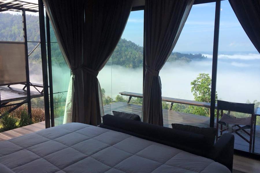 The Glass Box ที่พักดีไซน์ฮิปๆ ที่เน้นการตกแต่งแบบโอเพ่นใช้กระจกบ้านใหญ่ให้คุณได้มองเห็นวิวสวยๆ เบื้องหน้าได้ทุกเมื่อที่ต้องการ อีกทั้งภายในห้องพักยังตกแต่งได้อย่างสวยงาม มีสิ่งอำนวยความสะดวกที่ครบครันอย่างมากมาย และที่สำคัญคุณยังสามารถฟินไปกับสายหมอกในยามเช้า และชมวิวพระอาทิตย์ตกในยามเย็นได้จากบนเตียงอีกด้วย