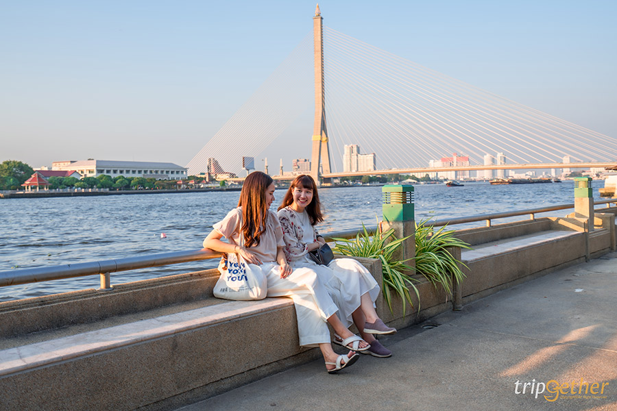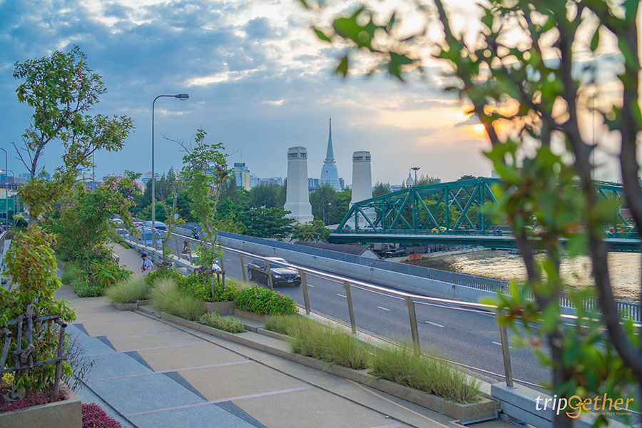 หาที่เที่ยวกรุงเทพฯ ชิลล์ๆ ช่วงเย็นเพื่อดูพระอาทิตย์ตก ต้องมาเช็คอินที่นี่เลย สวนลอยฟ้าเจ้าพระยา ตั้งอยู่ที่กลางสะพานพระปกเกล้า สะพานข้ามแม่น้ำเจ้าพระยาระหว่างฝั่งธนบุรีกับฝั่งพระนครนั่นเอง นอกจากที่นี่จะเป็นจุดชมพระอาทิตย์ตกที่สวยงามแล้วยังเป็นสวนที่สามารถมานั่งชิลล์ท่ามกลางความร่มรื่นของต้นไม้มากมาย หรือจะพกกล้องถ่ายรูปมากดชัตเตอร์ก็รับรองว่าได้รูปแนวสตรีทที่ปังแน่นอน ไฮไลท์คือที่สวนสาธารณะลอยฟ้าแห่งนี้สามารถชมวิวได้เต็มๆ แบบ 360 องศา และยังสามารถมองเห็นความความงดงามของพระปรางค์วัดอรุณฯ ได้อีกด้วย ใครหาที่นั่งชิลล์หรือสถานที่เดตยามเย็นแสงสวยแนะนำเลย
