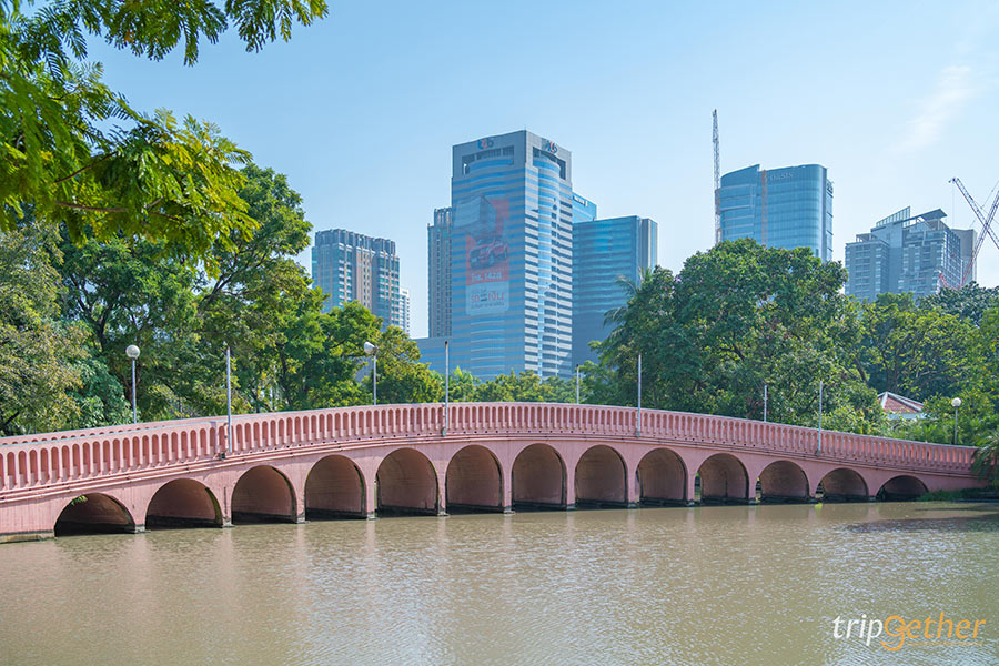 สะพานเขียว โลเคชั่นไวบ์เจแปนที่หลายคนนิยมมาเดินเล่น ถ่ายรูปชิคๆ กันมากมายแห่งนี้ เป็นโครงการเส้นทางจักรยานลอยฟ้าที่เชื่อมระหว่างสวนลุมพินีทางออก สน.ลุมพินี ไปสู่ด้านหลังโรงงานยาสูบบริเวณสวนเบญจกิติ ซึ่งสะพานเขียวนี้พาดผ่านชุมชนหลายครัวเรือนนั่นเอง เป็นเส้นทางที่ให้ผู้คนสามารถวิ่งออกกำลังกาย ปันจักรยาน หรือเดินเล่นชิลล์ๆ ยามเย็นที่สามารถไปมาระหว่างสองสวนสาธารณะได้อย่างสะดวก ที่สำคัญใครหาที่เที่ยวกรุงเทพฯ เพื่อเดินเล่น ถ่ายรูปในยามเย็น ขอบอกว่าที่นี่แสงสวยมาก มาแล้วได้รูปอัปลงไอจีเพียบแน่นอน