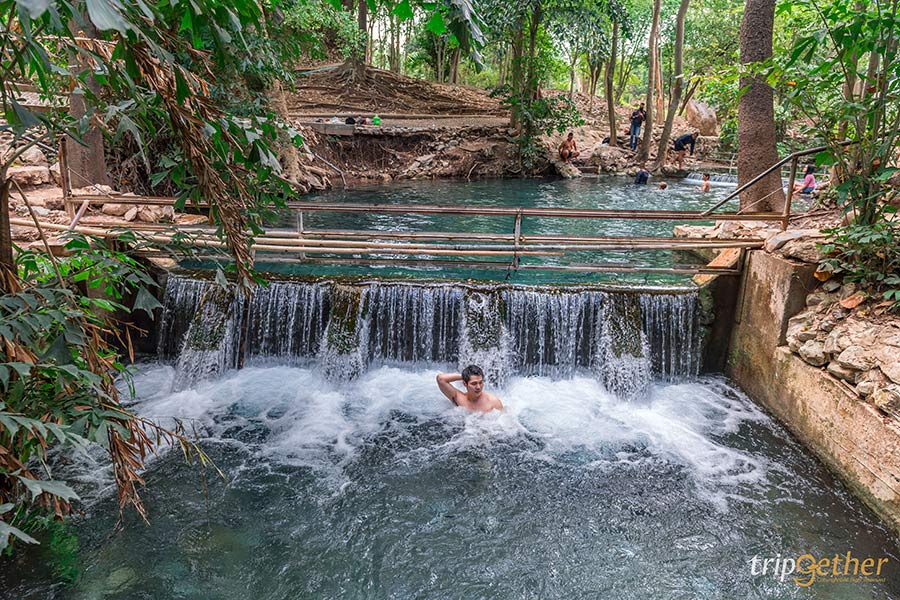 เริ่มต้นลิสต์ พิกัดเล่นน้ำคลายร้อน ใกล้กรุงเทพ กันที่ บ่อน้ำผุดธรรมชาติบ้านท่าช้าง หรือที่หลายคนเรียกกันติดปากว่า น้ำผุดปากช่อง ไฮไลท์ของที่นี่คือน้ำใสจนมองเห็นพื้นด้านล่างแบบชัดเจน สีฟ้าอมเขียวสบายตา ยิ่งได้แช่ตัวลงไปบอกเลยยิ่งฟิน น้ำเย็นสดชื่นมาก แถมบรรยากาศรอบๆ ยังโอบล้อมด้วยต้นไม้ใหญ่ให้ร่มเงา ไม่ร้อน ไม่อึดอัด ใครอยากเพิ่มความสนุกก็มีพายคายัคลอดอุโมงค์ต้นไม้ ได้ทั้งความชิลล์และมุมถ่ายรูปแบบธรรมชาติสุดๆ