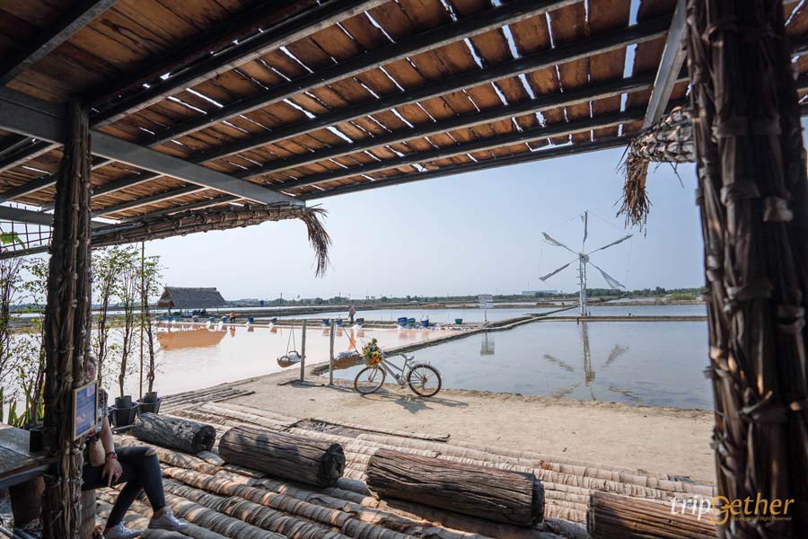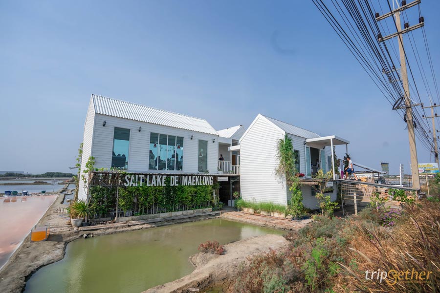 ซอลท์ เลค เดอ แม่กลอง ร้านคาเฟ่บรรรยากาศสุดเก๋กลางนาเกลือสีขาวโพลน นับว่าเป็นคาเฟ่นาเกลือแห่งแรกของไทยกันเลย ตัวร้านเป็นบ้านหลังสีขาวดีไซน์โมเดิร์น ดูคล้ายโรงนาของฝรั่ง มีวิวกระจกใสให้ชมวิวนาเกลือและวิถีชีวิตกันแบบเต็มตา ในส่วนของเมนู ที่นี่ก็มีให้เลือกกินกันมากมาย ทั้งของหวาน ของคาว และเครื่องดื่ม เมนูเด็ดสุดขึ้นชื่อต้องยกให้ ข้าวแมวร้องไห้ และสลิมโรลปลาทู คัดสรรปลาทูกันมาแบบสดๆ มาแม่กลองทั้งทีไม่กินปลาทู เดี๋ยวเขาจะหาว่ามาไม่ถึง