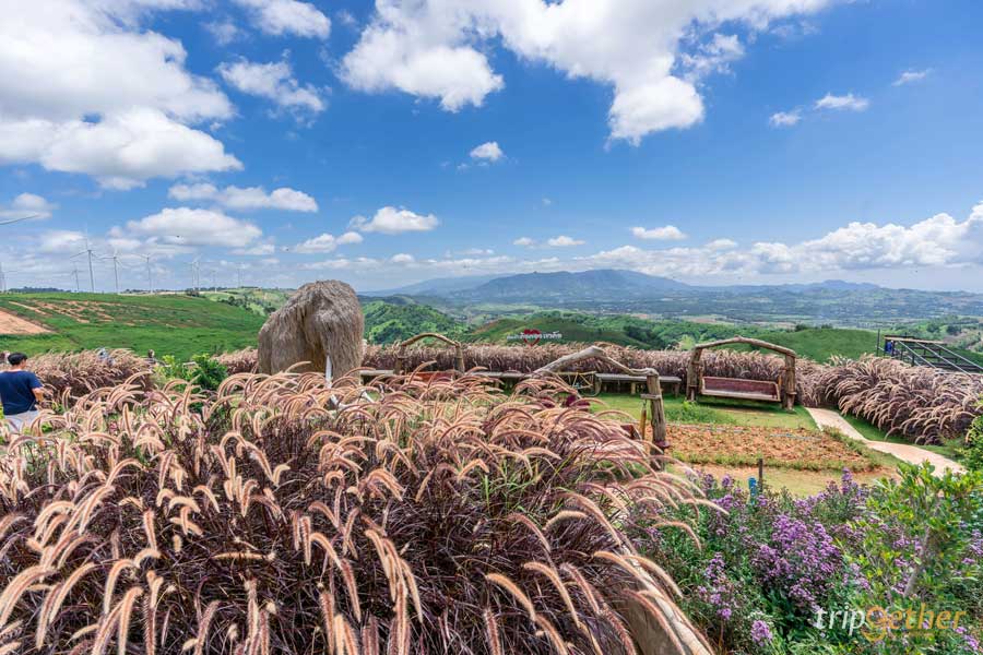 ถัดมาที่ ไร่ GB เขาค้อ จุดเช็คอินนี้ ตั้งอยู่ใกล้ๆ กับทุ่งกังหันลมเขาค้อเลย บนไร่แห่งนี้เต็มไปด้วยสีสันสดใสของสวนดอกไม้เมืองหนาวหลากหลายสีสันเรียงรายไล่ระดับลงไปตามไหล่เขา ไม่ว่าจะเป็นดอกกระเจียว ดอกทิวลิป ดอกลิลลี่ ดอกดาวเรือง โดยดอกไม้ต่างๆ จะปลูกหมุนเวียนตลอดปี เรียกได้ว่ามาเที่ยวช่วงไหนก็มีดอกไม้ให้ชมตลอดทั้งปี แถมมีมุมถ่ายรูปสวยๆ โดยมีกังหันลมเป็นฉากหลังที่ลงตัวมากๆ เลยล่ะ