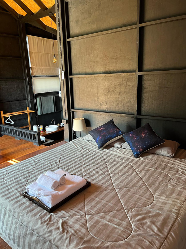 222 Mountain Camp ที่พักวิวหลักล้าน โอบล้อมไปด้วยแนวเขารอบด้าน ตัวที่พักตกแต่งด้วยสไตล์ลอฟท์ รองรับได้ตั้งแต่ 2 – 4 คน โดยในห้องพักมีหน้าต่างบานใหญ่ที่เพียงแค่เปิดม่านก็สามารถมองวิวภูเขาได้จากในห้อง อีกทั้งยังมีสิ่งอำนวยความสะดวกครบครัน บอกเลยว่าที่พักแห่งนี้นอกจากจะสงบ สบาย อยู่ท่ามกลางธรรมชาติแล้ว ยังจะมอบประสบการณ์การพักผ่อนแบบเต็มร้อยให้กับผู้เข้าพักอีกด้วย ถ้าใครมีโอกาสมาเที่ยวอุทัยธานี ต้องลองแวะเข้ามานอนพัก ให้ธรรมชาติโอบกอดกันสักคืนแล้ว