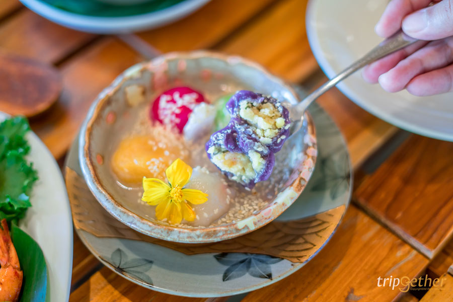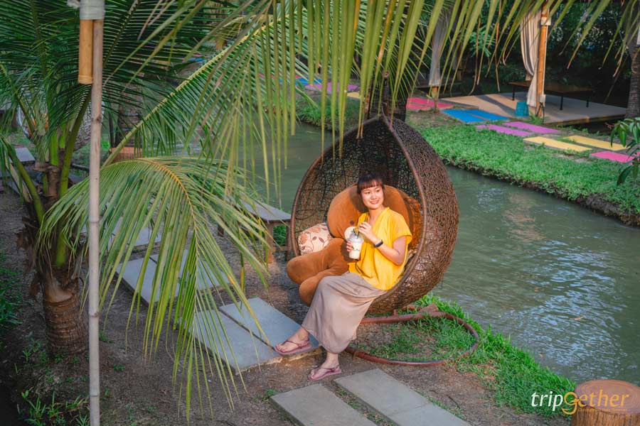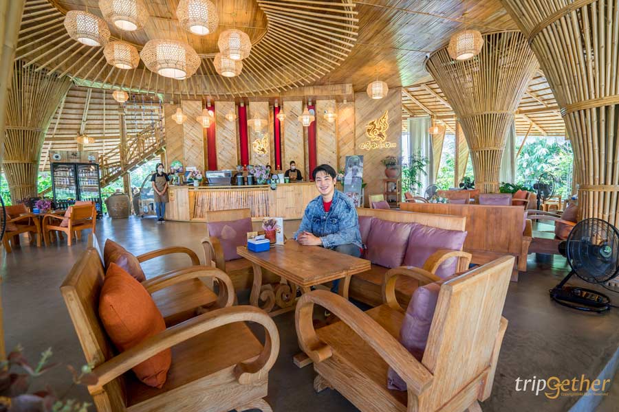 พามาปิดท้ายกันที่ คาเฟ่เดอรามัญ (De’ La Mon) คาเฟ่บรรยากาศสุดกรีนกลางทุ่งนาโล่ง และตั้งอยู่ริมสระน้ำ ความเก๋ของที่นี่คือดีไซน์ร้านที่นำเอาวัสดุจากธรรมชาติ โดยหลักๆ เป็นไม้ไผ่ เพื่อสื่อถึงเอกลักษณ์ของชาวมอญที่ผสานกับความทันสมัยได้อย่างลงตัว ในส่วนของเมนูอาหารก็มีให้เลือกเพียบ! ไม่ว่าจะเป็นเมนูอาหารไทย และอาหารนานาชาติ สำหรับเมนูที่เป็นไฮไลท์ของทางร้านพลาดไม่ได้เลยก็คือ แกงบอน เดอ รามัญ เป็นเมนูพื้นบ้านมอญ นอกจากนี้ทางร้านยังมีเมนูขนมหวานไทยโบราณให้สั่งมากินปิดท้ายมื้ออาหารอีกด้วยนะ