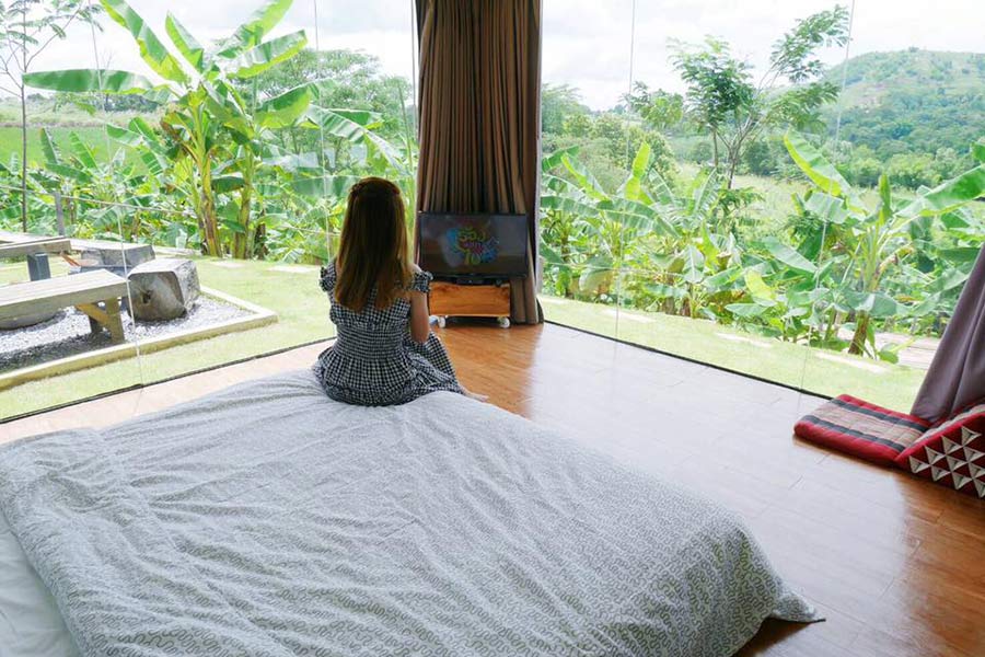 The Glass Box ที่พักดีไซน์ฮิปๆ ที่เน้นการตกแต่งแบบโอเพ่นใช้กระจกบ้านใหญ่ให้คุณได้มองเห็นวิวสวยๆ เบื้องหน้าได้ทุกเมื่อที่ต้องการ อีกทั้งภายในห้องพักยังตกแต่งได้อย่างสวยงาม มีสิ่งอำนวยความสะดวกที่ครบครันอย่างมากมาย และที่สำคัญคุณยังสามารถฟินไปกับสายหมอกในยามเช้า และชมวิวพระอาทิตย์ตกในยามเย็นได้จากบนเตียงอีกด้วย