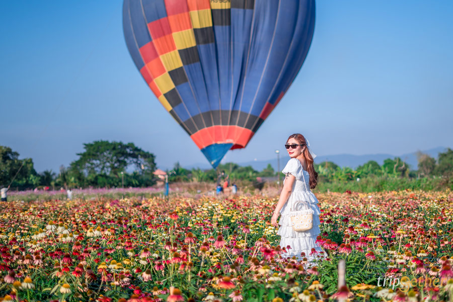 I Love Flower Farm จุดเช็คอินสุดชิคอีกหนึ่งที่ในจังหวัดเชียงใหม่ ที่เต็มไปด้วยดอกไม้ที่บานสะพรั่งอยู่เต็มไร่ดอกไม้ที่มีขนาดกว่า 16 ไร่ แถมบรรยากาศที่เย็นสบายถ่ายรูปได้ปังมากๆ อัปรูปลงโซเชียลได้รัวๆ ใครที่ชอบดอกไม้สีสันสวยงามบานสะพรั่ง สดใสแบบมองแล้วสดชื่นมากแต่ที่สวนดอกไม้จะเปิดให้นักท่องเที่ยวเข้าชมปีละครั้งเท่านั้นเพราะเว้นระยะให้ดอกได้เบ่งบานพร้อมโชความสวยงามให้ได้เข้าไปชมกัน และก็ยังมีบอลลูนขนาดใหญ่ให้ได้ขึ้นไปชมบรยากาศธรรมชาติกันอีกด้วย บอกเลยว่าห้ามพลาด