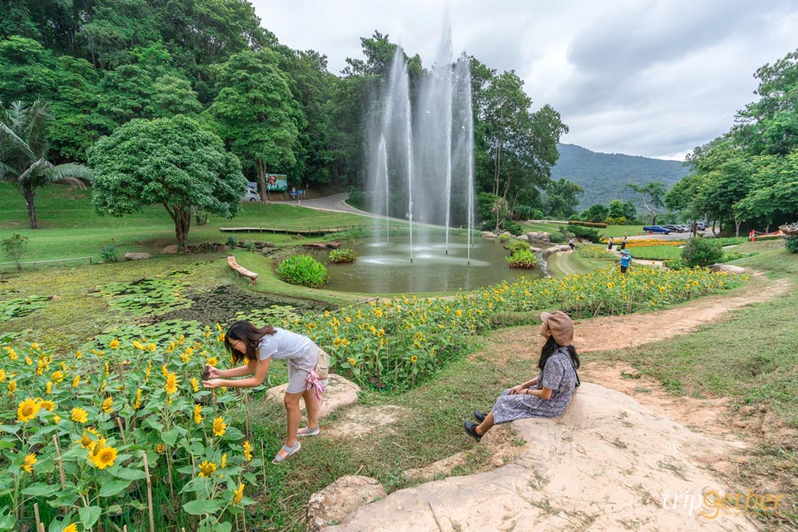 สวนดอกไม้ป้างฮวา สวนดอกไม้ที่ตั้งอยู่บนยอดดอยม่อนแจ่ม เป็นสวนดอกไม้ที่สวยหมือนอยู่ต่างประเทศมากๆ และที่สวนดอกไม้ป้างฮวาไม่ได้ปลูกแค่ดอกไม้เพียงอย่างเดียว ยังมีไร้ส้มที่สามารถเก็บกินได้อีกด้วย และทางสวนจัดมุมถ่ายภาพตามจุดต่างๆ ไว้หลายจุด ถ่ายรูปลงโซเชียลได้หลายมุมปังแน่นอน บรรยากาศก็ดีมากๆ วิวภูเขาตัดกับสีของดอกไม้ที่บานสะพรั่งเต็มไร่ สดชื่นสุดๆ ใครที่อยากเที่ยวแบบธรรมชาติ หาที่ถ่ายรูปคู่กับดอกไม้สวยๆ แนะนำเลยที่สวนดอกไม้ป้างฮวา