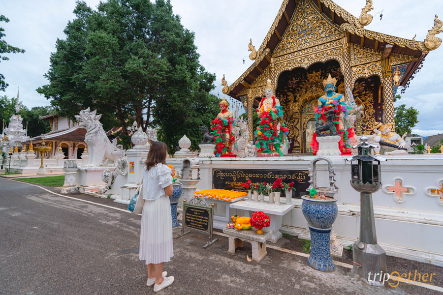 วัดดอนแก้ว วัดสวยที่ตั้งอยู่ในพื้นที่อำเภอแม่ริม จังหวัดเชียงใหม่ เป็นวัดที่มีสถาปัตยกรรมแบบพม่าและประดิษฐานพระพุทธรูปหินอ่อนปางมารวิชัย และเป็นวัดเก่าแก่อีกหนึ่งแห่งของจังหวัดเชียงใหม่ ที่หลายๆ คนเชื่อในเรื่องของความศักดิ์สิทธิ์ขององค์ท้าวเวสสุวรรณ แต่สิ่งที่แนะนำอันดับแรกคือเข้าไปสักการะพระพุทธรูปหินอ่อนในวิหารกลางสามารถบูชาธูปเทียนด้านวิหาร สักการะขอพรกันให้ปังๆ เป็นสิริมงคลแก่ชีวิต ส่วนการเดินทางก็สะดวกมากๆ แถมสถาปัตยกรรมที่นี่สวยมากๆ ใครสายมูต้องห้ามพลาด
