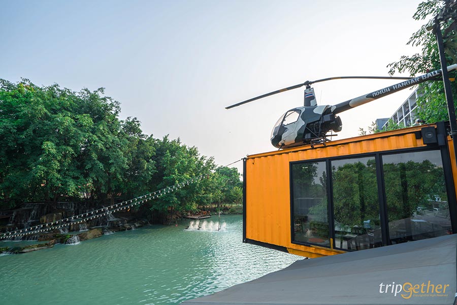 Hangar Cafe คาเฟ่ย่านมหาวิทยาลัยราชภัฎนครปฐมที่มีทั้งเครื่องบินรบ รถถัง และเฮลิคอปเตอร์ ปลดประจำการแล้วทางร้านนำมาตกแต่งให้ตัวร้านได้บรรยากาศเหมือนอยู่ในกองบิน พร้อมโซนให้เลือกนั่งทั้งในห้องแอร์ใกล้นำ้ตก และโซนเอ้าท์ดอร์นั่งริมสระน้ำสีฟ้าสวย นอกจากนี้ยังมีเปลตาข่ายเก๋ๆ ให้เอนกายถ่ายรูปอีกด้วย ใครที่รักการถ่ายรูปต้องมาชิลล์ร้านนี้เลย!!