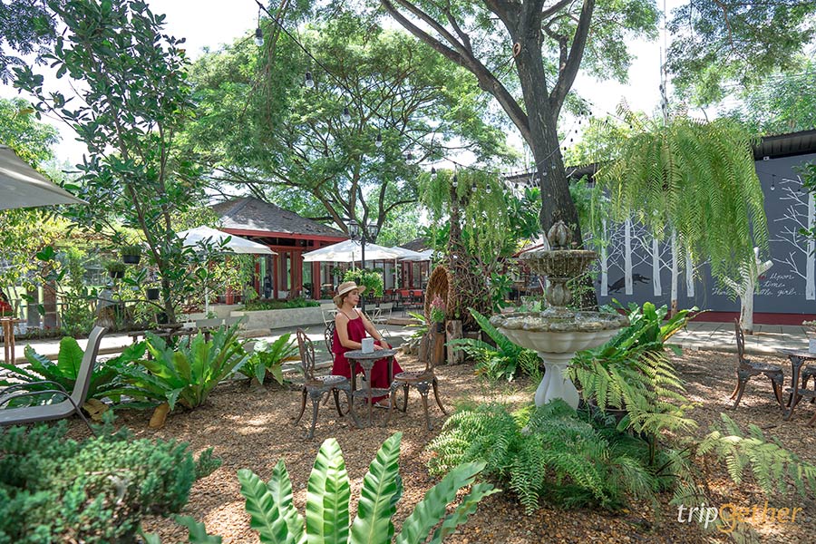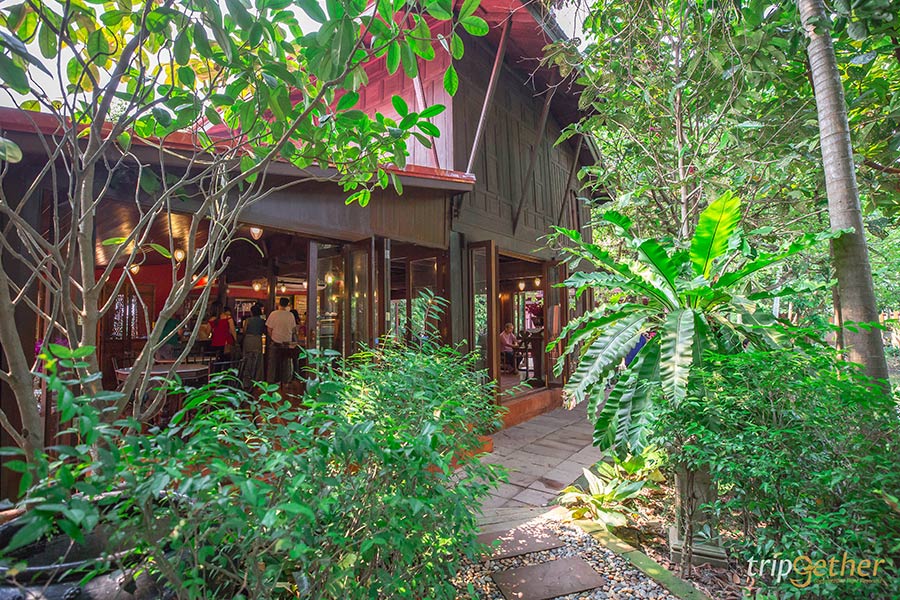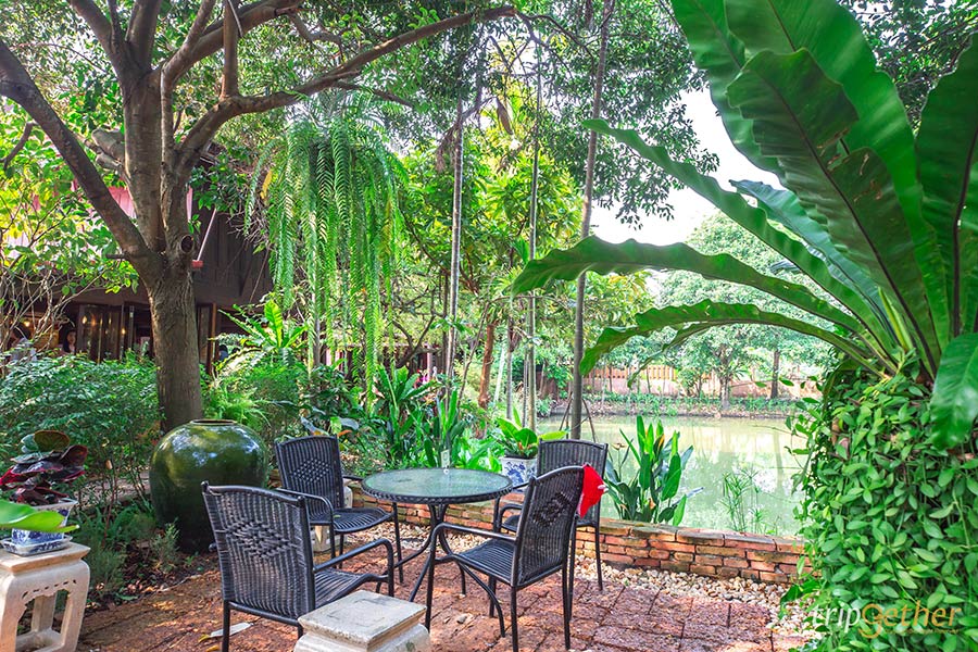 Jardin de Chaisri คาเฟ่สวยสไตล์ไทยในบ้านทรงไทยพร้อมใต้ถุนยกสูง เน้นการตกแต่งให้กลิ่นอายความเป็นไทย ตัวร้านรายล้อมไปด้วยบรรยากาศสบายสุดร่มรื่น สามารถเลือกนั่งได้ทั้งโซนอินดอร์และเอ้าท์ดอร์ สำหรับใครที่ชอบบรรยากาศธรรมชาติสามารถเลือกนั่งริมน้ำได้ และยังมีเบเกอรี่สไตล์ไทยให้ลิ้มลองหลากหลาย ทั้งเครปชาไทย รสชาติละมุนลิ้น บอกเลยสายชาไทยไม่ควรพลาด
