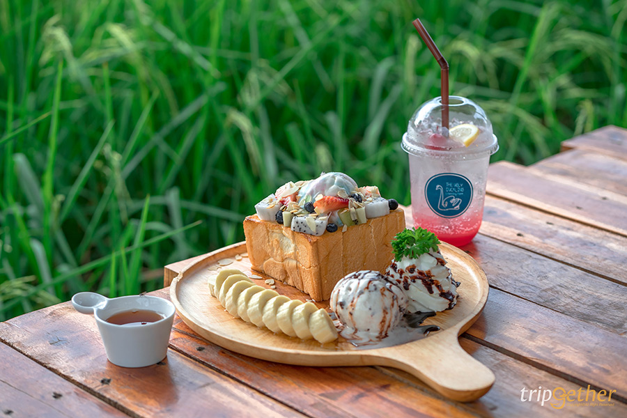 The Ugly Duckling Learning Farm คาเฟ่สวยกลางทุ่งนาบนโลเคชั่นปังมาในธีมนิทานเรื่องลูกเป็ดขี้เหร่ ที่นอกจากจะมีวิวสวยแล้วยังมีพื้นที่เรียนรู้เชิงเกษตร พร้อมสัตว์นานาชนิดที่ให้อาหารและถ่ายรูปคิ้วท์ๆ ลงโซเชียลสวยๆ ทั้งเป็ด ห่าน แพะ ควายเผือก และม้า ที่บอกเลยว่าน้องๆ หนูๆ จะต้องหลงรักอย่างแน่นอน มีโซนให้เลือกนั่งทั้งอินดอร์และเอ้าท์ดอร์ ใครที่ได้มาเยือนต้องสั่ง เนื้อกระทะร้อน, ห่อหมกมะพร้าวอ่อน, พิซซ่า, ปลาทับทิมทอดน้ำปลา และเครื่องดื่มฉ่ำๆ ทั้งชาไทยเย็น สตรอว์เบอร์รี่โซดา สั่งคู่กับของหวานอย่าง ฮันนี่โทสต์ ปังมากแม่!