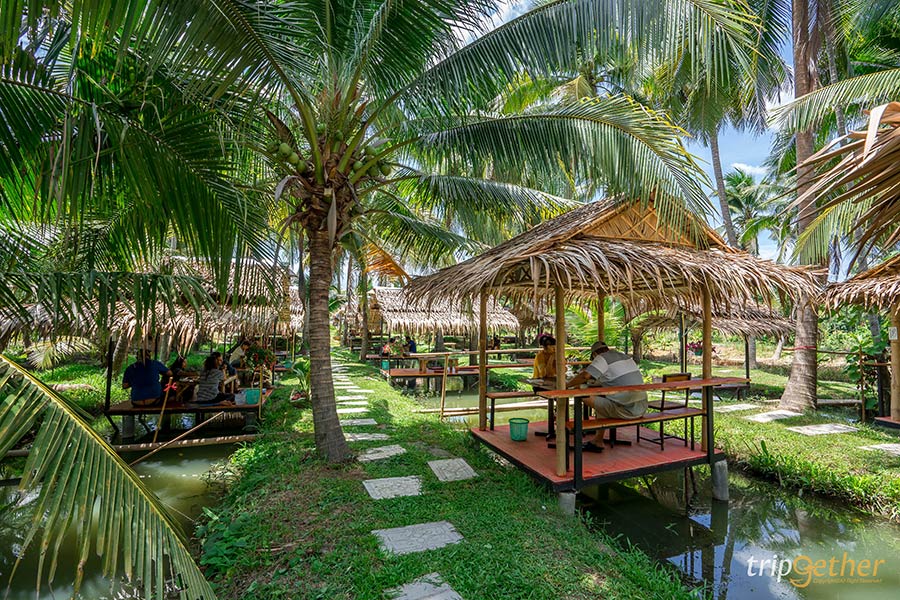 ยีญวนกลิ่นสวนไอดิน ร้านอาหารอร่อยที่เปิดอยู่กลางสวนมะพร้าวเน้นบรรยากาศร่มรื่นให้นั่งชิลล์ในร่องสวนกลางธรรมชาติ พร้อมเสิร์ฟเมนูอร่อยหลากหลายทั้ง ยำปูม้า ยำไข่ยางมะตูม ท้องปลาแซลมอนทอด กุ้งซอสไข่เค็ม ปูม้าดองน้ำปลา ยำหอยนางรม และอีกหลากเมนูเด็ด รับรองว่าใครได้ไปเยือนต้องติดใจบรรยากาศและรสชาติอาหารอย่างแน่นอน