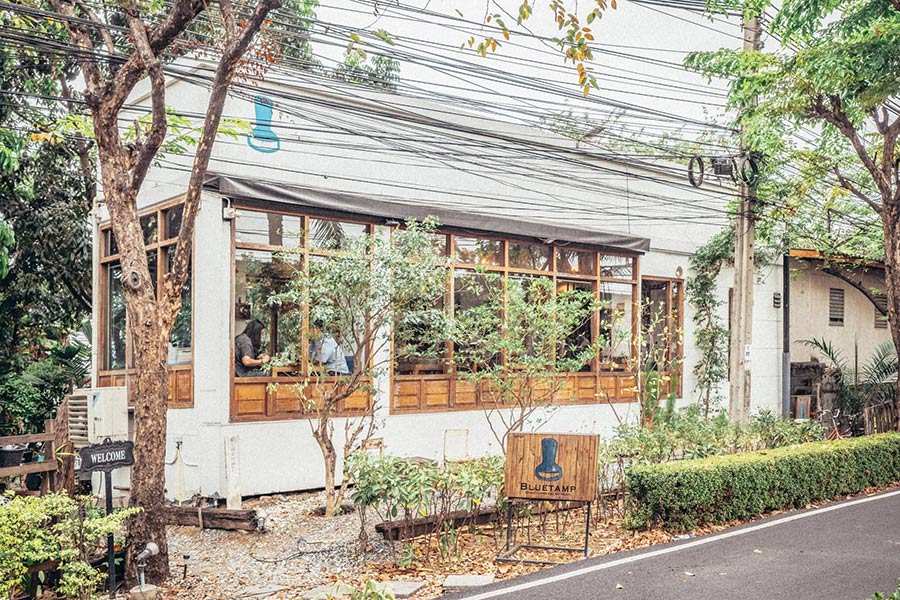 Bluetamp Cafe คาเฟ่น่ารักๆ ที่เน้นการตกแต่งในโทนสีขาวตัดกับงานไม้ในคอนเซ็ปต์สไตล์ออสเตรเลีย พร้อมเสิร์ฟเมนูอาหารหลากหลายสไตล์ออสเตรเลี่ยนบรันซ์อย่าง Eggs Benedict Salmon, Big Breakfast, เบค่อนผัดพริกแห้ง และเสิร์ฟกาแฟอย่าง กาแฟสเปเชียลตี้, คาปูชิโน่ และอีกหลายเมนู โดยรอบตัวร้านยังมีต้นไม้น้อยใหญ่ร่มรื่นสุดๆ ใครที่ชื่นชอบการมานั่งดื่มด่ำอาหารเช้าสไตล์ออสเตรเลี่ยนบรันซ์ต้องลอง!