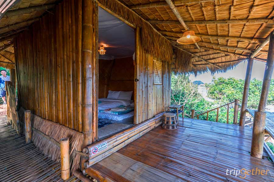 ใครชอบที่พักสไตล์แคมป์ปิ้งไปกันต่อกับ ภูทองแคมป์ (Phuthong Camp) ที่พักเชียงราย โซนภูชี้ฟ้า ตั้งอยู่บนเนินสูง โอบล้อมไปด้วยธรรมชาติป่าเขา มองไปทางไหนก็เจอแต่ความเขียวขจี สำหรับห้องพักของภูทองแคมป์จะเป็นสไตล์แคมป์ปิ้ง แบ่งออกเป็น 2 โซนใหญ่ๆ ก็คือโซนบนที่เป็นเต็นท์โดมใส ถัดมาโซนล่างเป็นเต็นท์กระโจม โดยเต็นท์แต่ละหลังจะมีพื้นที่ส่วนตัวและหันหน้าเข้าหาวิวหุบเขา บอกเลยว่ามานอนที่นี่ได้ใกล้ชิดธรรมชาติอย่างแท้จริง