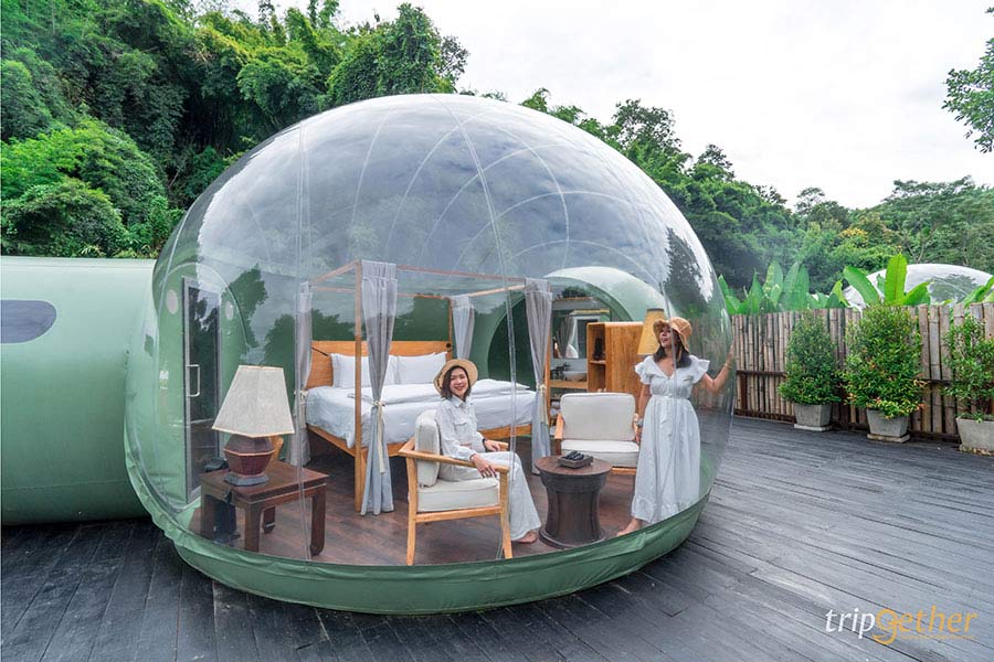 • Price: Jungle Bubble ราคาเริ่มต้น 17,000 บาท/คืน/รวมชุดปิกนิกอาหารมื้อดินเนอร์และมินิบาร์
