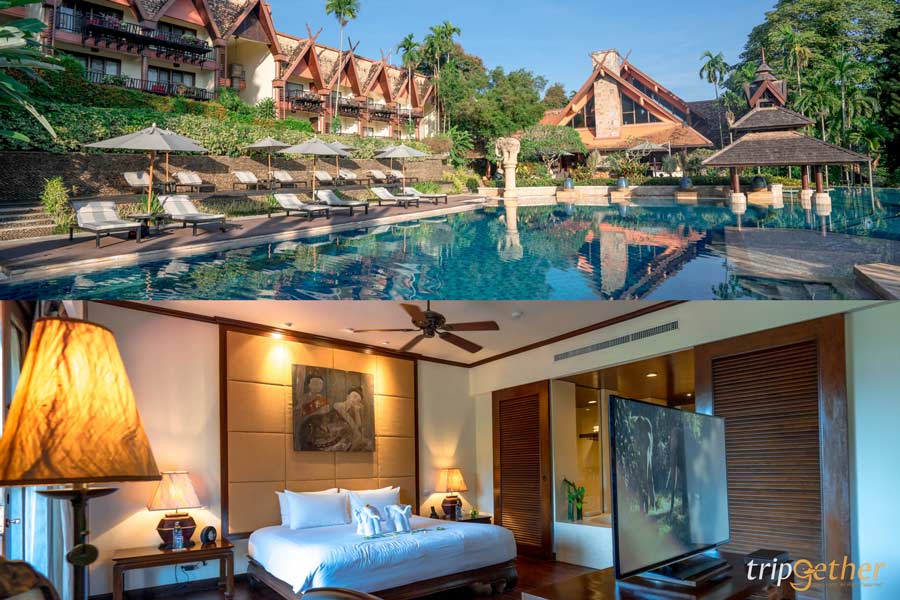 ไปปิดท้ายกันที่โซนเชียงแสนเลยดีกว่า กับ ที่พักเชียงราย หรูอย่าง อนันตรา สามเหลี่ยมทองคำ แคมป์ช้าง แอนด์ รีสอร์ท (Anantara Golden Triangle Elephant Camp & Resort) บอกเลยว่าที่นี่เป็นหนึ่งใน ที่พักเชียงราย ที่ควรค่ากับการมานอนพักผ่อนสักครั้ง ตัวที่พักตั้งอยู่บนสันเขาสามารถมองเห็นทิวทัศน์อันงดงามของพื้นที่บริเวณชายแดนของสามประเทศ ทั้งไทย เมียนมา และลาว หรือที่เรียกกันว่า สามเหลี่ยมทองคำ ส่วนห้องพักของที่นี่ก็มีให้เลือกมากมายไม่ว่าจะเป็นห้องพักสุดหรูในไทป์ต่างๆ หรือจะเป็นเต็นท์โดมใสใกล้ชิดธรรมชาติ ดูช้างตัวโตที่เดินมาอวดโฉมให้เราเห็นกันแบบใกล้ๆ พร้อมกับสิ่งอำนวยความสะดวกอย่างครบครัน