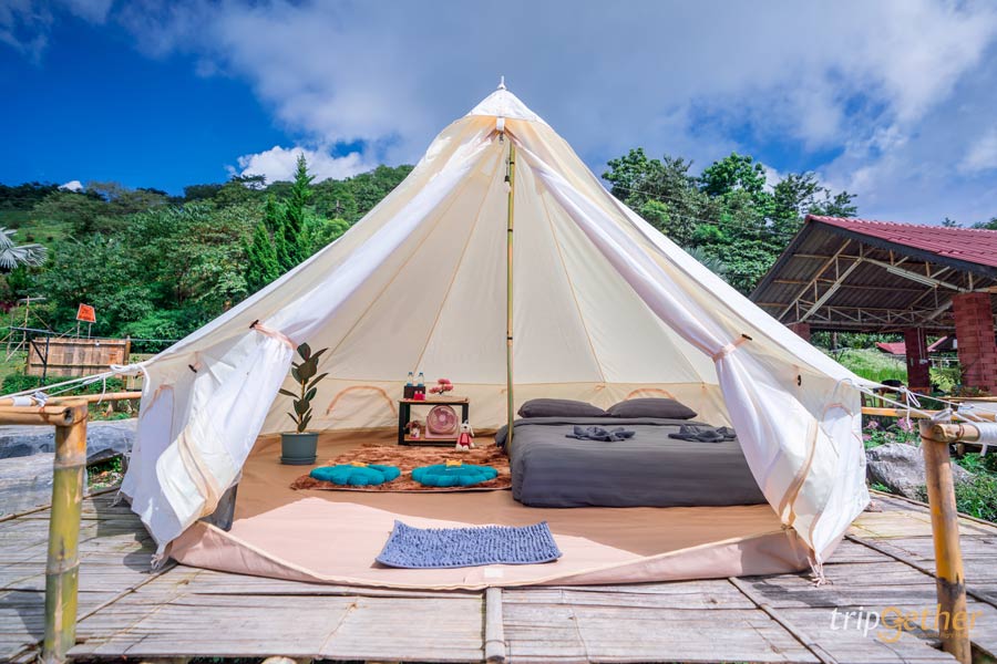 เดือนตุลาคม ราคากระโจม 1,800 บาท/2 คน/คืน, ราคาโดม 2,200 บาท/2 คน/คืน **รวมอาหารเช้า