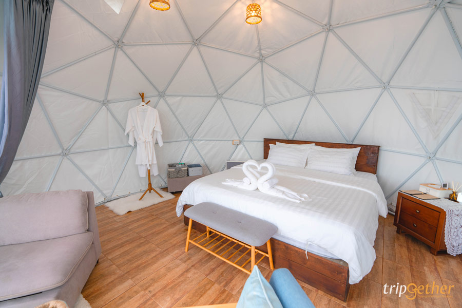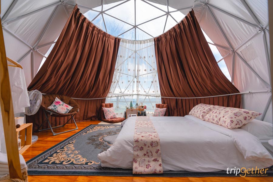 • Price: เดือนมิถุนายน – กันยายน ราคาเต็นท์โดม 5 เมตร 3,900 บาท/คืน, ราคาเต็นท์โดม 4 เมตร 2,900 บาท/คืน