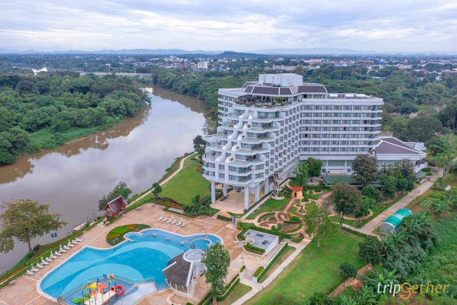 ถัดมาที่อีกหนึ่ง ที่พักเชียงรายหรูระดับ 5 ดาว เดอะ ริเวอร์รี บาย กะตะธานี (The Riverie by Katathani) พิกัดนี้ตั้งอยู่ริมแม่น้ำกก สามารถมองเห็นวิวสวยได้อย่างเต็มตา อีกทั้งยังอยู่ใกล้สถานที่ท่องเที่ยวสำคัญของเชียงรายเพียบ ตัวที่พักมีการตกแต่งอย่างทันสมัยผสมผสานกับกลิ่นอายของความเป็นล้านนา มีห้องพักให้เลือกหลากหลายแบบ มีสิ่งอำนวยความสะดวกอย่างครบครัน แถมรองรับทุกการเข้าพักไม่ว่าจะมาเป็นคู่หรือครอบครัวใหญ่