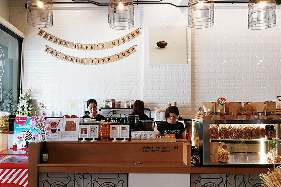อยากกินกาแฟจริงๆ นะเหรอ มาที่ เดอปัง สิ ที่นี่นอกจากขึ้นชื่อเรื่องกาแฟที่สดและอร่อยแล้ว ยังพิถีพิถันในการทำเบเกอรี่ทั้งแบบดั้งเดิมและแบบประยุกต์ ให้ลูกค้าได้สัมผัสกับความรู้สึกดีๆ ในแต่ละคำให้มากที่สุด หรือใครจะทานอาหารประเภทสเต็ก พิซซ่าก็สามารถสั่งได้ ตัวร้านตกแต่งเรียบหรู ใช้ไฟเหลืองส้มเพื่อเพิ่มบรรยากาศที่ดีในการกิน ทำให้สามารถถ่ายรูปเช็คอินพร้อมกับเมนูที่สั่งดูหรูหราไปอีกระดับ นอกจากนี้ ใครสนใจเรื่องทำขนมหรือกาแฟ ทางร้านก็มีเวิร์คช้อปให้ได้มาลองทำและได้ไปศึกษาในพื้นที่จริงอีกด้วย