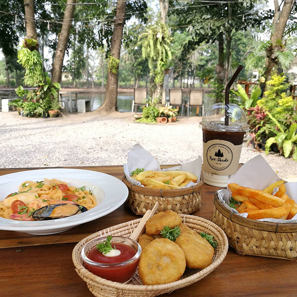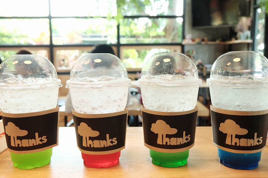 อีกหนึ่งคาเฟ่ริมแม่น้ำแม่กลองน่านั่งดูพระอาทิตย์ตกยามเย็น กับร้าน Thanks ร้านตกแต่งเน้นวัสดุไม้ ให้ความรู้สึกเรียบง่ายเป็นกันเอง มีที่จอดรถรองรับนักท่องเที่ยวด้วย ที่นี่นอกจากเครื่องดื่มรสกลมกล่อมแล้ว ใครสายเค้กโฮมเมดพูดเลยว่าห้ามพลาดที่นี่เด็ดขาด ทั้งสตรอว์เบอร์รี่ ดีไลท์ บราวนี่ คริสมาสต์ ฯ อาหารคาวก็อรอ่ยไม่แพ้กัน โดยจะเป็นอาหารไทยซะส่วนใหญ่ เอาเป็นว่าใครมาที่ Thanks แล้วไม่รู้จะสั่งอะไร ลองถามพนักงานดูก็ได้นะ เพราะที่นี่บริการดีมากเลยแหละ
