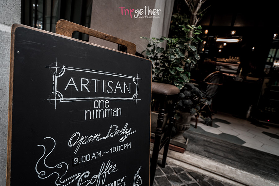 Artisan Cafe คาเฟ่น้องใหม่แห่งโครงการวันนิมมานที่เปิดคู่กันกับร้านเขียวไข่กาตกแต่งร้านด้วยโทนสีดำสไตล์ยุโรปและที่เป็นเอกลักษณ์คือบาริสต้าที่มีฝีมือในการชงกาแฟ Artisan cafe สาขาวันนิมมานเป็นร้านเล็กๆ แต่ก็ยังคงคอนเซ็ปความฮิปอยู่ ภายในร้านสามารถนั่งได้ 2 โต๊ะ แต่มีมุมชิคๆ ไว้ให้ถ่ายรูปเก๋ๆ เหมาะสำหรับสายชิคๆ คูลๆ มาแล้วไม่ผิดหวังอย่างแน่นอน