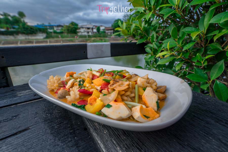 “ไฉไล คาเฟ่” เป็นคาเฟ่กึ่งร้านอาหารที่ขายเฉพาะตอนเย็น โดยร้านตกแต่งด้วยสไตล์ลอฟ์ทผสมเรโทติดริมแม่น้ำวัง ต้องบอกว่าบรรยากาศชิลล์สุดๆ ยิ่งช่วงเย็นเวลาพระอาทิตย์ใกล้ตก แล้วท้องฟ้าเป็นสีวนิลาสกายเป็นอะไรที่สวยมากๆ บรรยากาศโรแมนติกน่าชวนคนรู้ใจมานั่งดินเน่อร์สบายๆ ริมน้ำซะจริงๆ ที่ร้านก็มีเมนูอาหารเยอะแยะให้คุณได้เลือกเลยนะคะ