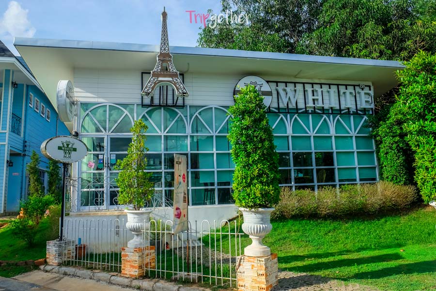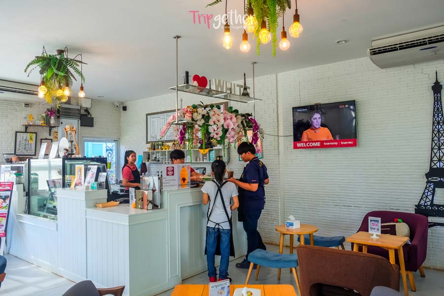 “ไวท์ คอฟฟี่ แอนด์ เบเกอรี่” คาเฟ่สีขาวบรรยากาศส่วนตัวอยู่ริมถนนซุปเปอร์ไฮเวย์งาว – ลำปาง ซึ่งเป็นร้านเบเกอรี่สไตล์ฝรั่งเศส ภายในร้านก็ตกแต่งแบบเรียบง่ายด้วยสีขาว เมนูแนะนำของทางร้านคือ มูสช๊อคโกแลต บราวนี่ชีสเค้ก และเมนูแพนเค้กไต้หวัน ต้องบอกว่าอรอยสมคำลำลือจริงๆ ใครที่เป็นสายขนมหวานต้องไม่พลาดร้านนี้เลยนะคะ
