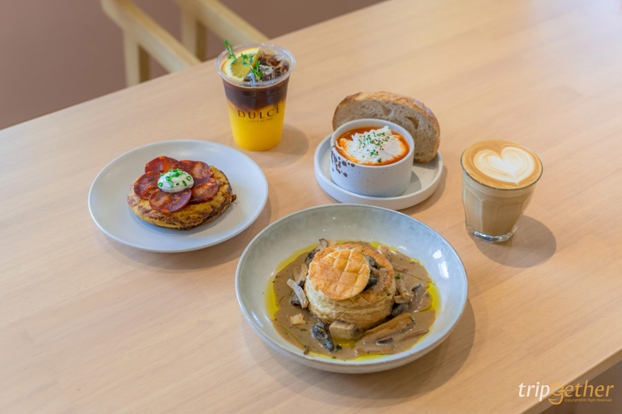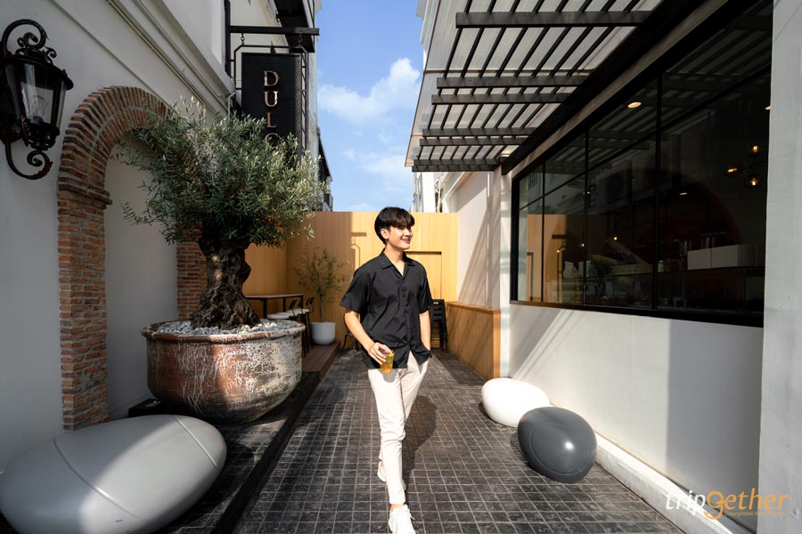 มาเริ่มกันที่ ดูลเซ่ คาซ่า เดอปัง (DULCE CASA DE PAN) คาเฟ่ Brunch สไตล์ยุโรปผสมผสานกลิ่นอายความเป็นสเปน โดยด้านหน้าใช้โทนสีเข้มให้ความรู้สึกถึงความพรีเมียมหรูหรา ส่วนด้านในร้านเน้นใช้โทนสีขาวชมพูเป็นหลัก แถมยังแบ่งพื้นที่เป็นสัดส่วนได้อย่างดีทั้งโซนเคาเตอร์ โซนที่นั่ง และโซนตู้เบเกอรี่ มีมุมสวยๆ ให้ได้ถ่ายรูป ฟีลเหมือนไปเที่ยวเมืองนอกเลยล่ะ มาพร้อมเมนูสุดพรีเมี่ยมมากมายให้เลือกทั้งอาหารสไตล์สเปน เบเกอรี่สไตล์ฝรั่งเศส และเมนูเครื่องดื่มอีกหลากหลาย อย่างเช่น กาแฟที่เลือกใช้เมล็ดจากทั่วโลก บอกเลยว่าทางร้านคัดสรรวัตถุดิบคุณภาพเพื่อเสิร์ฟสิ่งที่ดีที่สุดให้กับลูกค้า ใครอยากลิ้มลองความอร่อยต้องไม่พลาด