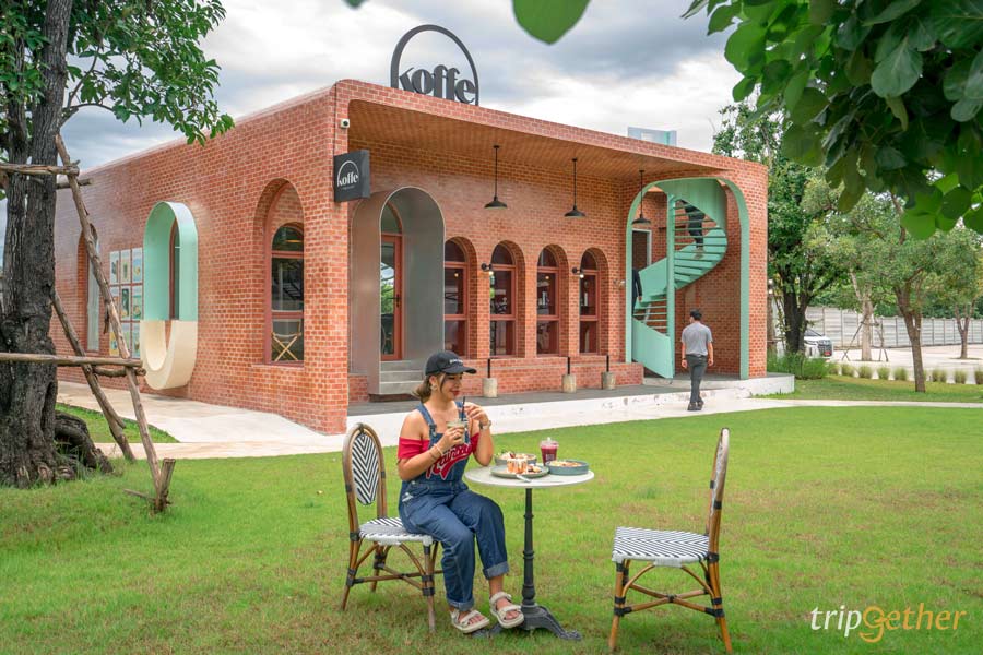 คาเฟ่ Brunch ใกล้กรุงเทพ มู้ดดีฟีลต่างประเทศ พามาเช็คอินต่อกันที่ คอฟฟี่บาร์ (Koffe.Coffeebar) มาพร้อมกับการตกแต่งสไตล์กึ่งโมเดิร์นอังกฤษโ ดดเด่นด้วยอิฐเผาสีส้มทั้งหลัง เพิ่มความเก๋ด้วยกระจกทรงโค้ง และมุมไฮไลท์ที่ใครมาแล้วก็ต้องถ่ายรูปนั่นก็คือ บันไดวนสีเขียวมิ้นท์ ในส่วนของเมนูอาหารก็เรียกได้ว่าจัดเต็มครบทั้งอาหารแบบ All day brunch เมนูของหวานเบเกอรี่ และเครื่องดื่ม น้ำผลไม้สกัดเย็น หลากหลายสูตรถูกใจสายเฮลตี้สุดๆใครมาเที่ยวกาญจนบุรีห้ามพลาดร้านนี้เลย