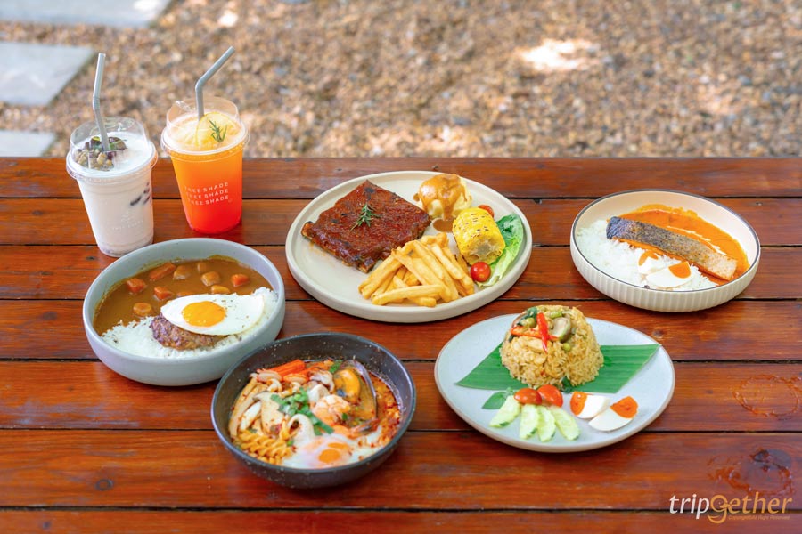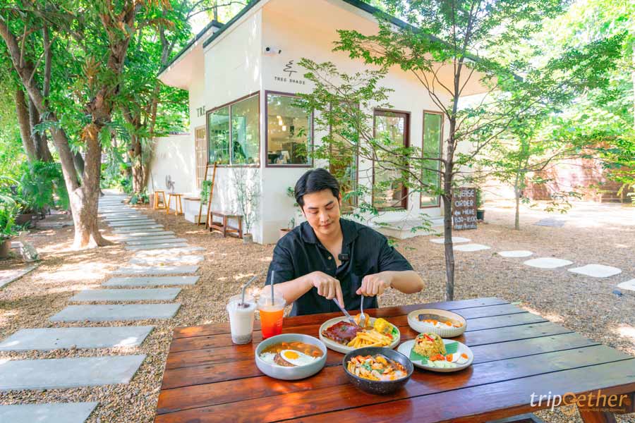 สายธรรมชาติปักหมุด ทรี เฉด (Tree Shade Cafe) คาเฟ่สวยท่ามกลางความกรีนของเหล่าต้นไม้ที่ให้ความรู้สึกสดชื่นมากๆ แถมไม่ว่าจะมองไปทางไหนก็สบายตาสุดๆ โดยงตัวร้านตกแต่งด้วยบรรยากาศแบบแคมป์ปิ้งกลางธรรมชาติ ในส่วนของโซนที่นั่งมีทั้งแบบอินดอร์ในตัวร้านและโซนเอาท์ดอร์กลางสวนสุดร่มรื่น สำหรับเมนูอาหารมีทั้งอาหารไทยและอาหารแบบฟิวชั่นให้เลือกหลากหลาย แต่ที่พลาดไม่ได้เลยก็คือ ซี่โครงหมูย่างซอสบาร์บีคิว ข้าวแกงกะหรี่แฮมเบิร์กหมู พาสต้าต้มยำ ทุกเมนูเสิร์ฟมาหน้าตาน่ากินมาก รสชาติอร่อย นอกจากนี้ก็ยังมีของหวานเค้ก เบเกอรี่ และเครื่องดื่มสุดสดชื่นด้วยนะ