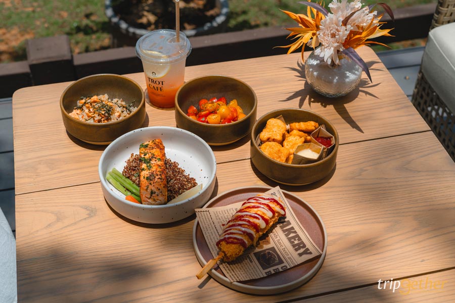 ทร็อต คาเฟ่ เขาใหญ่ (Trot Cafe, Khaoyai) อีกหนึ่ง คาเฟ่ Brunch ใกล้กรุงเทพ ที่นี่เป็นคาเฟ่สไตล์คันทรี่ท่ามกลางทุ่งหญ้าและต้นไม้ใหญ่ โดยมีคอนเซ็ปต์ให้ทุกคนได้มานั่งพักปล่อยใจไม่ต้องเร่งรีบ ดื่มด่ำกับบรรยากาศและธรรมชาติบรรยากาศสบายๆ ได้ฟีลเหมือนไปต่างประเทศเลย มีทั้งโซน Indoor และ Outdoor ให้นั่งชิลล์ๆ กินของอร่อยๆ ซึ่งมีให้เลือกครบทั้งเมนูของกินเล่น อาหาร ขนม และเครื่องดื่ม รวมไปถึงกิจกรรมต่างๆ ที่สามารถทำได้อย่างขี่ม้า ให้อาหารม้าหรือขับรถคลาสสิก เรียกได้ว่ามาเช็คอินที่เดียวแต่ครบจบ อิ่มท้อง ได้รูปสวย แถมมีกิจกรรมให้ทำด้วย