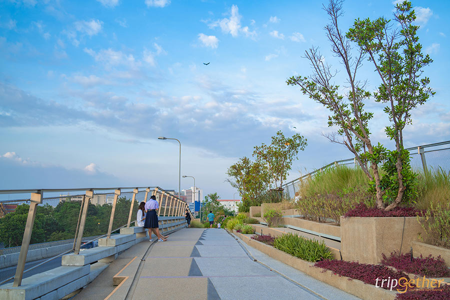 สวนลอยฟ้าเจ้าพระยา จุดชมพระอาทิตย์ตกดินสุดชิลล์ ตั้งอยู่ตรงกลางของสะพานพระปกเกล้า ตลอดทางเดินบนสวนลอยฟ้าจะมีที่นั่งและต้นไม้เล็กๆ ให้ได้นั่งชิลล์ ถ่ายรูปเล่นกัน ส่วนวิวบนนี้ก็สวยมากมองเห็นแม่น้ำเจ้าพระยาและสะพานพุทธทอดยาวข้ามแม่น้ำ ยิ่งมาในช่วงตอนเย็น บอกเลยว่าฟีลดีมากกก นั่งรับลมสบายๆ มองดูพระอาทิตย์ค่อยๆ ลับของฟ้าหรือจะถ่ายรูปก็สวยเกาหลีสุดๆ ด้วยนะ