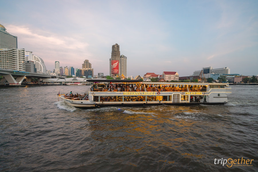 ปิดท้ายด้วยประสบการณ์สุดโรแมนติกอย่าง การล่องเรือเจ้าพระยา ชมวิวยามค่ำคืน เป็นกิจกรรมที่เหมาะมากสำหรับพาคนรัก ครอบครัว หรือฉลองโอกาสพิเศษ เพราะได้ทั้งบรรยากาศ วิวสวย และอาหารอร่อยในคราวเดียว โดยมีผู้ให้บริการหลายเจ้า ไม่ว่าจะเป็น Chao Phraya Princess, White Orchid, Meridian, Viva Alangka ส่วนใหญ่จะเป็นบุฟเฟต์อาหารไทยและนานาชาติ พร้อมดนตรีสดและการแสดงบนเรือ ระหว่างล่องเรือจะได้ชมแลนด์มาร์กสำคัญของกรุงเทพ เช่น วัดอรุณฯ พระบรมมหาราชวัง สะพานพระราม 8 และ ตึกริมแม่น้ำ ที่เปิดไฟยามค่ำคืน สวยอลังการสุดๆ ใครอยากเปลี่ยนบรรยากาศจากดินเนอร์ร้านอาหารทั่วไป ลองล่องเรือชมวิวแม่น้ำเจ้าพระยากันสักครั้ง รับรองว่าประทับใจ