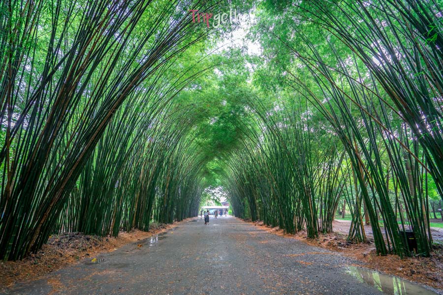 “วัดจุฬาภรณ์วนาราม” ตั้งอยู่ในตำบลบ้านพริกจังหวัดนครนายก โดยทางเข้าด้านหน้าจะเป็นซุ้มป่าไผ่ที่โค้งมาบรรจบกัน จนเกิดเป็นซุ้มที่คอยบังแดด ให้คุณเดินชมความงามชิลล์ๆ ซึ่งซุ้มป่าไผ่นี้มีความคล้ายคลึงกับ ป่าไผ่อาราชิยาม่า อันโด่งดังที่ประเทศญี่ปุ่น ต้องเรียกว่าเป็นความคล้ายคลึงกันที่เกิดขึ้นเองตามธรรมชาติ ระหว่างทางเดินไปก็จะได้ยินเสียงไม้ไผ่ลั่น เหมือนเป็นโน๊ตดนตรีอันไพเราะคอยขับกล่อม หลังจากเดินชมความงามเสร็จ เราก็เข้าวัดไปไหว้พระขอพรที่วัดจุฬาภรณ์วนารามกันซะหน่อยนะคะ