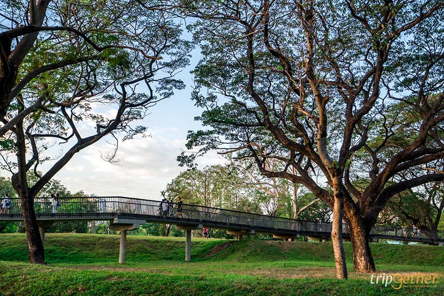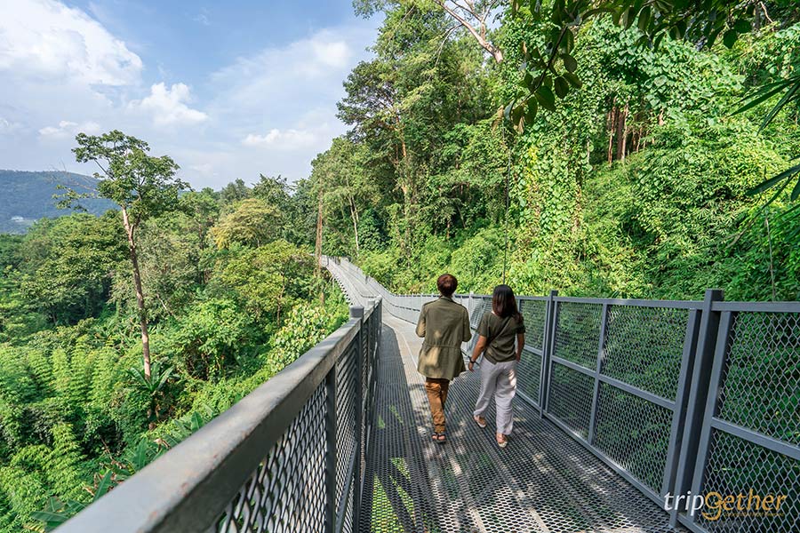 ปิดท้ายกันที่สกายวอล์คสวนป่าเบญจกิติ ที่ความสูงอาจจะไม่ได้สูงมากเท่าที่อื่นแต่เรื่องวิวปังๆ บอกเลยว่าไม่แพ้ใครแน่นอน ระยะทางของสกายวอล์คในสวนป่าเบญจกิติมีความยาวกว่า 1.6 กิโลเมตร เป็นทางเดินที่สามารถเดินชมธรรมชาติภายในสวนสาธารณะแห่งนี้ได้อย่างเต็มที่ และช่วงเวลาที่แนะนำคือก่อนพระอาทิตย์กำลังจะตก ช่วงเวลานี้วิวตรงสกายวอล์คจะสวยมากๆ ใครที่ชอบถ่ายรูปต้องมาเลย นอกจากนี้เรายังมาสามารถมาเดินเล่น พักผ่อน หรือออกกำลังได้อีกด้วยนะ เพราะเป็นสกายวอล์คที่อยู่ใจกลางกรุงเทพฯ และเดินทางได้สะดวกมาก ถ้ายังไม่มีเวลาเดินทางไปเช็คอื่นสกายวอล์คจังหวัดอื่นๆ แวะมาที่นี่กันก่อนได้เลย