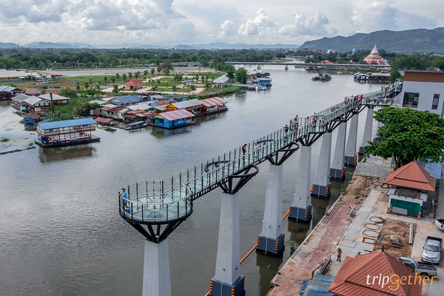 สกายวอล์คสองแคว – แม่กลอง แลนด์มาร์กแห่งใหม่ของจังหวัดกาญจนบุรีที่ใครๆ ก็ต้องมาเช็คอิน ชมวิวความสวยงามของแม่น้ำแควใหญ่และแม่น้ำแควน้อยที่ไหลมาบรรจบกันกลายเป็นต้นกำเนิดของแม่น้ำแม่กลอง ด้วยโลเคชั่นของสกายวอล์คแห่งนี้ที่ตั้งอยู่ริมแม่น้ำทำให้สามารถมองเห็นวิวสวยๆ ได้แบบ 360 องศา ทั้งวิวของเมืองกาญและวิวของแม่น้ำ นอกจากนี้ของทางเดินที่นี่ยาวถึง 150 เมตร และสูงจากพื้นถนน 12 เมตร พื้นทำจากกระจกใสแข็งแรง เวลาขึ้นไปจะต้องสวมรองเท้าที่ทางเจ้าหน้าที่จัดเตรียมไว้ให้ด้วยนะ ใครอยากชมวิวสวยๆ มาเที่ยวกาญจนบุรีแวะมาที่นี่กันได้เลย