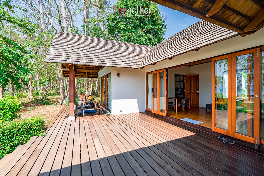 เริ่มต้นที่ห้องพักสำหรับคู่รัก คู่เพื่อนสนิท ที่อยากพักผ่อนแบบส่วนตัว ด้วยบ้านพัก Deluxe Villa และ Beachfront Deluxe ดีไซน์และการตกแต่งทั้ง 2 แบบนี้จะคล้ายกัน โดยห้องดี Deluxe Villa จะตั้งอยู่ด้านในวิวสวนสวย ส่วน Beachfront Deluxe จะตั้งอยู่ติดริมทะเลที่สามารถนอนดูวิวทะเลได้จากบนเตียงเลยทีเดียว