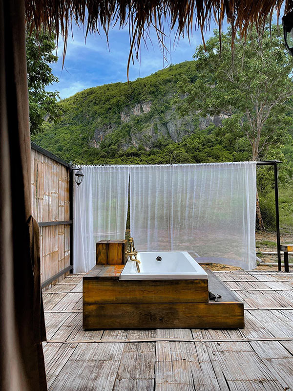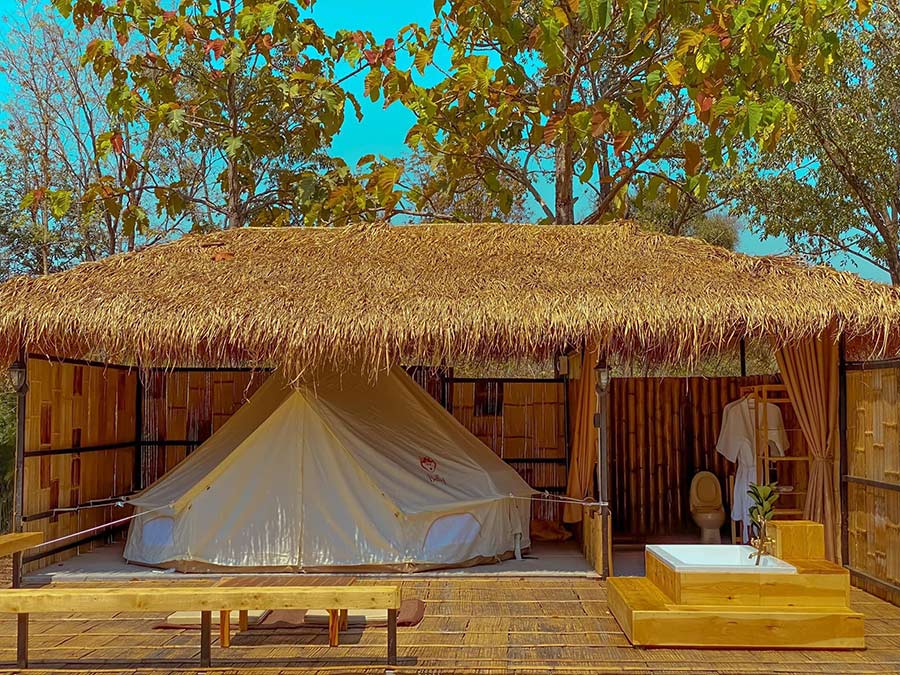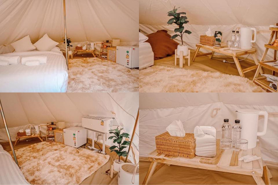 At Wild Camping ที่พักสไตล์ glamping ที่ถูกโอบล้อมท่ามกลางขุนเขา ห้องพักจะเป็นเต็นท์หรูที่ถูกออกแบบมาอย่างสวยงามและเป็นส่วนตัว แต่ละหลังถูกสร้างแบบเว้นระยะห่าง มีพื้นที่ใช้สอยหน้าเต็นท์เป็นของตัวเอง พร้อมกับระเบียงกว้างให้นอนมองดูวิวความกรีนแบบใกล้ชิด และแม้จะเป็นการนอนเต็นท์ แต่ก็ยังพกความสะดวกสบายมาแบบจัดเต็ม ทุกหลังมีห้องน้ำส่วนตัว รวมถึงอ่างอาบน้ำกลางแจ้งให้ได้แช่น้ำฟินๆ หรือถ่ายรูปทำคอนเทนต์ก็เริ่ดมาก