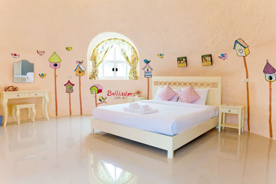 เบลลิสซิโม คาเฟ่ แอนด์ รีสอร์ท (Bellissimo Café & Resort) เป็นอีกหนึ่งที่พักน่ารักๆ ท่ามกลางงบรรยากาศที่สวยงามของสวนผึ้ง ซึ่งตกแต่งในสไตล์วินเทจ บ้านพักแต่ละหลังมีรูปทรงทันสมัยแปลกตา มาพร้อมสีสันและลายเพ้นท์หวานๆ เอาใจคุณหนู ไม่เพียงแต่ที่พักเท่านั้นที่บรรยากาศน่ารักกุ๊กกิ๊ก แต่ที่นี่ยังมีคาเฟ่ร้านกาแฟไว้คอยให้บริการเสิร์ฟเครื่องดื่มและของหวานกับลูกค้าอีกด้วย