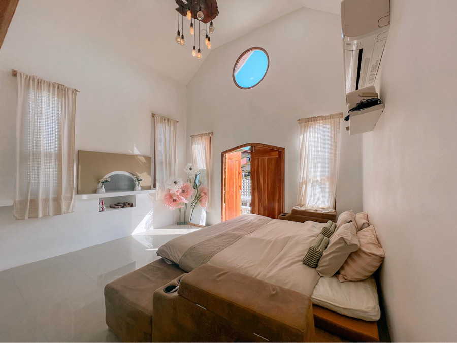 ปุณวนา คอทเทจ ที่พักดีไซน์สุดเก๋ หลังคาทรง A-frame อันเป็นเอกลักษณ์ของบ้านสไตล์นอร์ดิก ผสานกับการตกแต่งที่มีความเป็นมินิมอลลด้วยเฟอร์นิเจอร์ไม้เครื่องอำนวยความสะดวกครบครันมีเครื่องทำน้ำอุ่น ฝักบัว และอ่างอาบน้ำสไตล์ลอฟ เหมาะกับชาวแก๊งค์เป็นที่สุดเพราะที่พักที่นี่จะเป็นบ้านหลังใหญ่นอนได้ 5 คน มีครัวเล็กๆในบ้าน ชั้นลอยข้างนอกไว้สำหรับทากิจกรรมปาร์ตี้หรือนอนดูดาวฟินๆ และยังมีหน้าต่างทรงกลมที่ให้แสงและถ่ายเทอากาศได้เย็นสบายกำลังดีฟีลเหมือนอยู่คาเฟ่เลย น่ารัก อบอุ่นมาก มีมุมถ่ายรูปเพียบ! การเดินทางก็สะดวกมากๆ ระยะทางจากที่พักไปถ้ำนาคา,ศาลปู่อือลือนาคราช ไม่ไกลเลย มาพักที่ปุณวนา คอทเทจ นอกจากจะได้นอนพักผ่อนแล้วยังได้ภาพสวยๆ กลับไปอีกด้วย