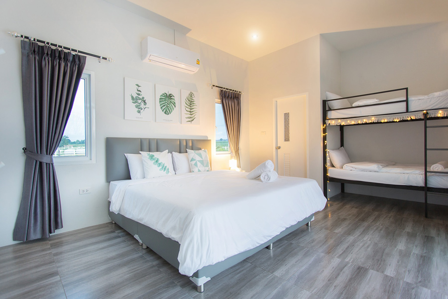 เลยไปเที่ยวโซนหัวหินกันบ้างกับ Cocomelon Pool Villa Huahin ที่พักพูลวิลล่าที่เหมาะกับครอบครัวที่มีเด็กเล็กๆ เป็นที่สุด เพราะนอกจากไฮไลท์จะอยู่ที่สระว่ายน้ำระบบน้ำเกลือและสไลด์เดอร์ยาว 5 เมตรแล้ว ที่นี่ยังมี kid’s club ส่วนตัวภายในบ้านที่มาพร้อมเครื่องเล่นแบบแน่นๆ ให้เด็กๆ ได้เพลิดเพลินกันอย่างเต็มที่ไม่แพ้ผู้ใหญ่กันเลย ห้องพักของที่ Cocomelon Pool Villa Huahin มี 3 ห้องนอน 3 ห้องน้ำ สามารถรองรับผู้มาเยือนได้ถึง 10 คน บอกเลยว่าครอบครัวไหนหาที่พักที่จะพาเด็กๆ ไปด้วยได้ต้องที่นี่เลย
