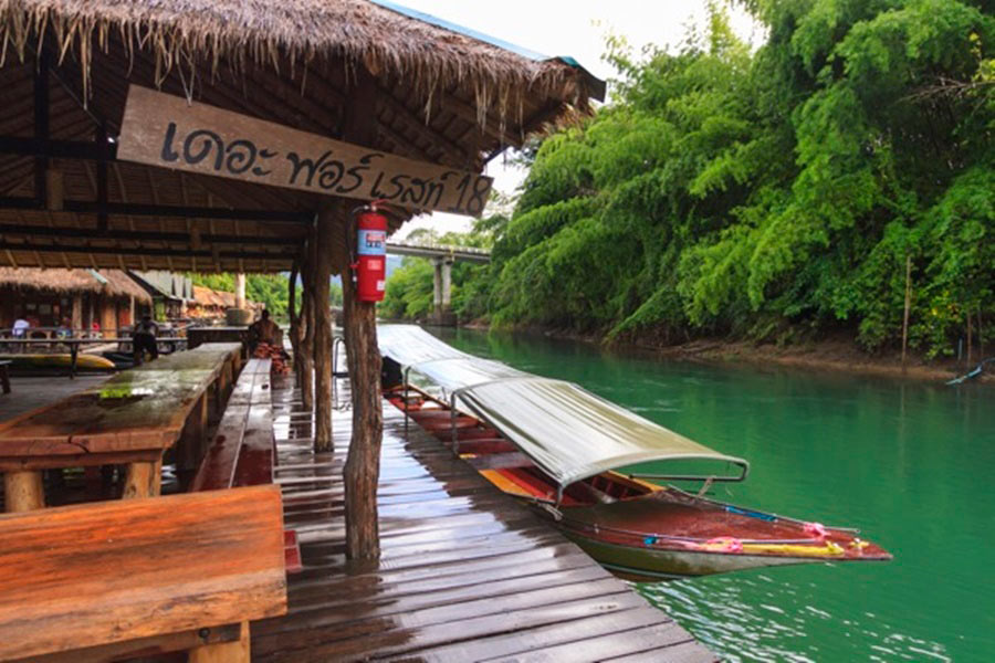 เดอะ ริเวอร์แคว จังเกิล ราฟท์ (The River Kwai Jungle Rafts) ที่พักแพลอยน้ำ ตั้งอยู่บริเวณแม่น้ำแควน้อยที่โอบล้อมไปด้วยธรรมชาติและขุนเขาที่อุดมสมบูรณ์ บรรยากาศเงียบสงบเหมาะแก่การพักผ่อน การตกแต่งจะเน้นใช้วัสดุที่เป็นมิตรต่อสิ่งแวดล้อม แม้ว่าห้องพักที่นี่จะไม่มีไฟฟ้าและอินเตอร์ WiFi แต่ธรรมชาติและกิจกรรมจากที่พักจะทำให้เราได้พักผ่อนอย่างเต็มที่