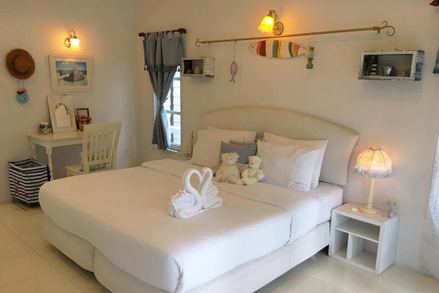 ที่พักบรรยากาศดี ติดวิวทะเล มีสระว่ายน้ำให้คุณได้เพลิดเพลิน บ้านพักสไตส์บังกาโล ที่มีเพียง 12 หลัง เหมาะกับครอบครัวและคู่รัก ที่ต้องการความสงบ คุณสามารถพาน้องหมาน้องแมวเข้าพักได้ โดยมีค่าใช้จ่ายเพิ่ม 1,000 ต่อคืน รับน้องหมาน้องแมวได้มากสุด 2 ตัวต่อห้อง ตอนเช้ายังสามารถพาน้องหมามาวิ่ง Jogging ริมชายหาดได้