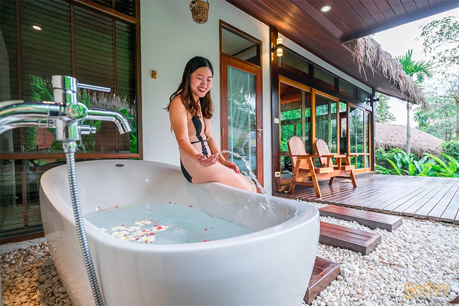 Away Koh Kood Resort รีสอร์ทเกาะกูดสไตล์บังกะโลดีไซน์หรู บนโลเคชั่นสุดปังท้ายหาดคลองเจ้า บรรยากาศเงียบสงบสมกับชื่อที่พักเลย ตัวที่พักมาในสไตล์ Polynesian ที่ได้รับแรงบันดาลใจจากหมู่เกาะในแปซิฟิก ออกแบบมาเป็นบังกะโลสุดไพรเวทจำนวน 30 หลัง มีทั้งแบบ Deluxe, Deluxe Oceanfront สำหรับห้องไฮไลท์ก็คือ Deluxe Ocean Facing ที่มีระเบียงพร้อมวิวหาดให้ได้ชมแบบฟินๆ ในส่วนของกิจกรรมก็มีครบครัน สามารถดำน้ำชมประการัง พายเรือคายัค พายแพดเดิ้ลบอร์ดชิคๆ รวมถึงตกปลาได้จากหน้าหาดเลย