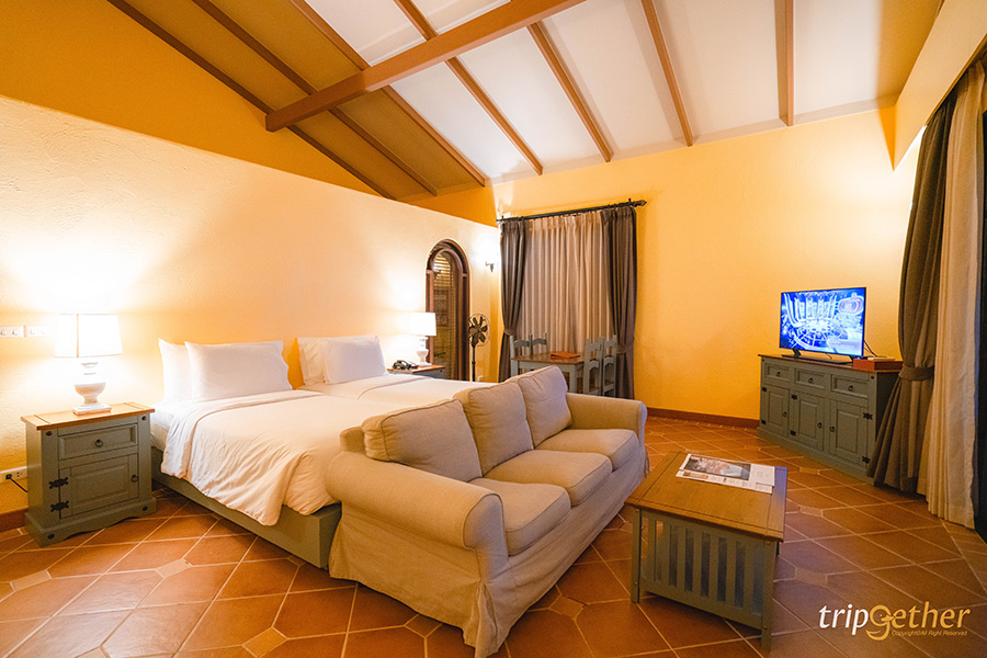 Rancho Charnvee Resort & Country Club ที่พักเขาใหญ่ สไตล์ยุโรปบนพื้นที่กว่า 700 ไร่ ท่ามกลางธรรมชาติสุดลูกหูลูกตา นอกจากจะได้ผ่อนคลายกับความกรีนของแมกไม้ ที่นี่ยังมีกิจกรรมสนุกๆ ให้ทำมากมาย ไม่ว่าจะเป็นขับรถคลาสสิก ขี่ม้า ตีกอล์ฟ ปั่นจักรยาน ขับ ATV ดูหนังกลางแปลง รวมถึงมีห้องอาหารสุดหรูที่พร้อมเสิร์ฟอาหารอิตาเลี่ยนอร่อยๆ และคาเฟ่ฟีลดี สำหรับห้องพักมาในสไตล์ยูโรเปียนคันทรี มีกลิ่นอายความเป็นตะวันตกแบบเต็มเปี่ยม และมีให้เลือกตั้งแต่ห้องพักไปจนถึงวิลล่า ถือว่าเป็นที่พักที่ตอบโจทย์การพักผ่อนอย่างแท้จริง