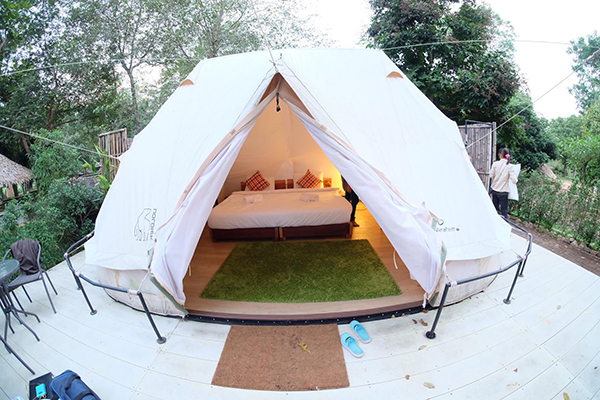 เดอะ แคนวาส บูติก แคมป์ ที่พักกลางป่าสไตล์แคมปิ้งสุดชิค ที่แวดล้อมไปด้วยความสุขจากธรรมชาติ ที่พักแห่งนี้ออกแบบมาอย่างเรียบง่าย ไม่มีแอร์ ทีวี มีเพียงพัดลมตัวเล็กๆ และที่นอนนุ่มๆ ที่พอจะให้คุณได้มุดตัวนอนท่ามกลางอากาศสบายๆ ของสวนผึ้ง หากมาในช่วงฤดูหนาว (พ.ย-ก.พ) ยังได้เพลิดเพลินไปกับทุ่งลิตเติ้งรูบี้ ที่จะผลิดอกสีขาวผลัดใบสีม่วง ที่ให้ความรู้สึกเหมือนคุณกำลังเดินหลงป่าอยู่ในต่างประเทศยังไงยัง