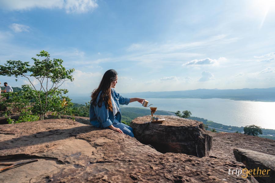 ต่อกันที่ เขายายเที่ยง จุดชมวิวสุดปังของจังหวัดนครราชสีมา ที่นี่อยู่ใกล้เขื่อนลำตะคอง บรรยากาศดีมากจนอยากหยุดเวลาไว้ตรงนั้นเลยล่ะ บนสันเขื่อนสามารถชมวิวภูเขาเขียวชอุ่มและอ่างเก็บน้ำกว้างใหญ่ได้แบบพาโนรามา ไฮไลท์คือ กังหันลมยักษ์สีขาว ที่หมุนรับลมตลอดเวลา เหมาะกับการถ่ายรูปสุดๆ แนะนำให้มาช่วงเย็นๆ จะได้วิวพระอาทิตย์ตกดินสวยๆ พร้อมลมเย็นๆ พัดมาแบบเพลินใจสุดๆ นอกจากนี้ยังมีกิจกรรมปั่นจักรยานรอบสันเขื่อน หรือจะดริปกาแฟริมผาชมวิวหมอกยามเช้าก็ชิลล์ไปอีกแบบ เรียกว่าได้ทั้งรูปสวยและอากาศดีๆ กลับไปเต็มปอด