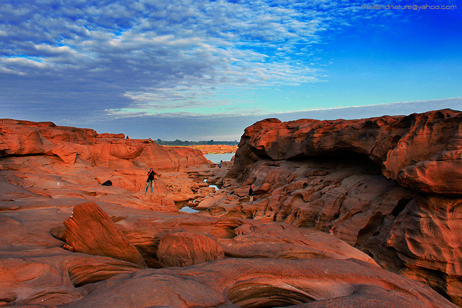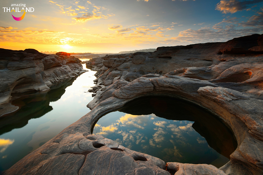 สามพันโบก ตั้งอยู่ที่บ้านโป่งเป้า ตำบลเหล่างาม อำเภอโพธิ์ไทร จังหวัดอุบลราชธานี เป็นแก่งหินขนาดใหญ่ในลำน้ำโขง ซึ่งจะปรากฏให้เห็นเฉพาะในช่วงฤดูแล้ง (ประมาณเดือนมกราคม – เมษายน) แก่งหินก็จะโผล่พ้นน้ำออกมาให้เราได้ไปเที่ยวชมกัน ทั้งนี้ ที่เรียกว่า “สามพันโบก” เพราะบนแก่งหินมีแอ่งน้ำขนาดเล็กใหญ่จำนวนมากกว่า 3,000 แอ่ง (คำว่า “โบก” เป็นภาษาลาว แปลว่า “แอ่ง”) จึงเรียกที่นี่ว่า สามพันโบก นอกจากนี้ ที่นี่ยังเป็นอีกหนึ่งสถานที่ดูดาวและถ่ายดาวที่สวยงามอีกแห่งหนึ่งในประเทศไทย