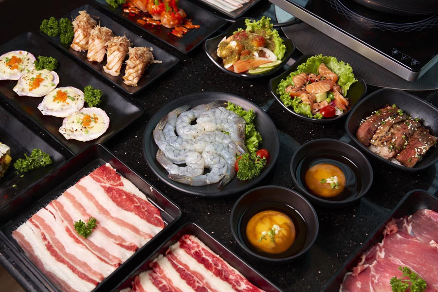 Fuku Yakiniku Shabu Sushi บุฟเฟ่ต์ปิ้งย่างสไตล์ญี่ปุ่น ที่จัดเต็มเมนูอาหารให้แบบไม่มีกั๊ก ไม่ว่าจะเป็น ยากินิกุ ชาบู คู่กับเมนูที่มีทั้งเนื้อคุณภาพจากออสเตรเลีย เนื้อเสือร้องไห้ หรือจะเป็นอาหารทะเลอย่างกุ้ง หอยเชลล์ หอยแมลงภู่นิวซีแลนด์ นอกจากนี้ยังมีซูชิและซาซิมิฉ่ำๆ ให้เลือกสั่งกันแบบไม่อั้นอีกด้วย อย่างซาซิมิรวม แซลมอนซาซิมิ หอยนางรมเกาหลี เท่านั้นยังไม่พอ เพราะที่นี่ยังมีเมนูอาหารญี่ปุ่นพรีเมียมให้สั่งมากินแบบฟินๆ เพียบ